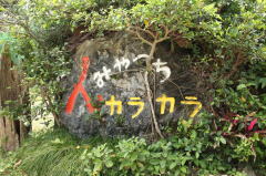 大浦湾のすぐそば、通りに面したところにカラカラはあります。
