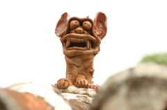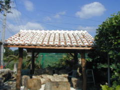 オープンテラスの最奥にある東屋。よく見ると、屋根の上に一対のシーサーがいます。